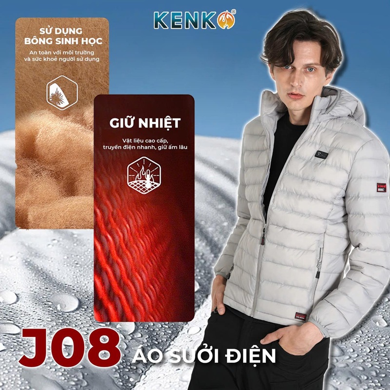 Công nghệ và chất liệu: Dòng áo sưởi Kenko J08 được trang bị công nghệ kháng nước Blocktech hiện đại và hữu ích. Ngoài ra, áo sưởi Kenko J08 còn rất được ưa chuộng tại Indonesia nhờ vào chất liệu tới 5 lớp, vừa giữ ấm tốt lại vẫn đảm bảo sự nhẹ nhàng, dễ hoạt động cho người mặc. Bên trong kết hợp thêm lớp kẹp tầng cho tác dụng chống dồn bông, vón cục. Kết hợp với lớp bông sinh học mật độ dày cùng lớp vải lót tráng bạc có tác dụng chống khô da, mang tới sự ấm áp và thoải mái nhất cho người mặc.