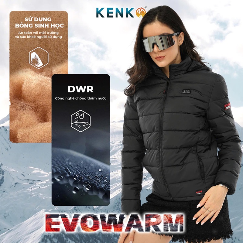 Công nghệ: Sản phẩm áo sưởi ấm Evowarm ghi điểm với công nghệ DWR COATING (Durable Water Repellent). Nghĩa là sử dụng vải phủ lớp chống thấm bền vững, nhưng vẫn đảm bảo độ thoáng khí của áo. Cùng với đó là công nghệ sưởi tiến hoá, cho phép làm ấm nhanh hơn 5 lần, nhiệt độ nóng hơn gấp 2 lần.