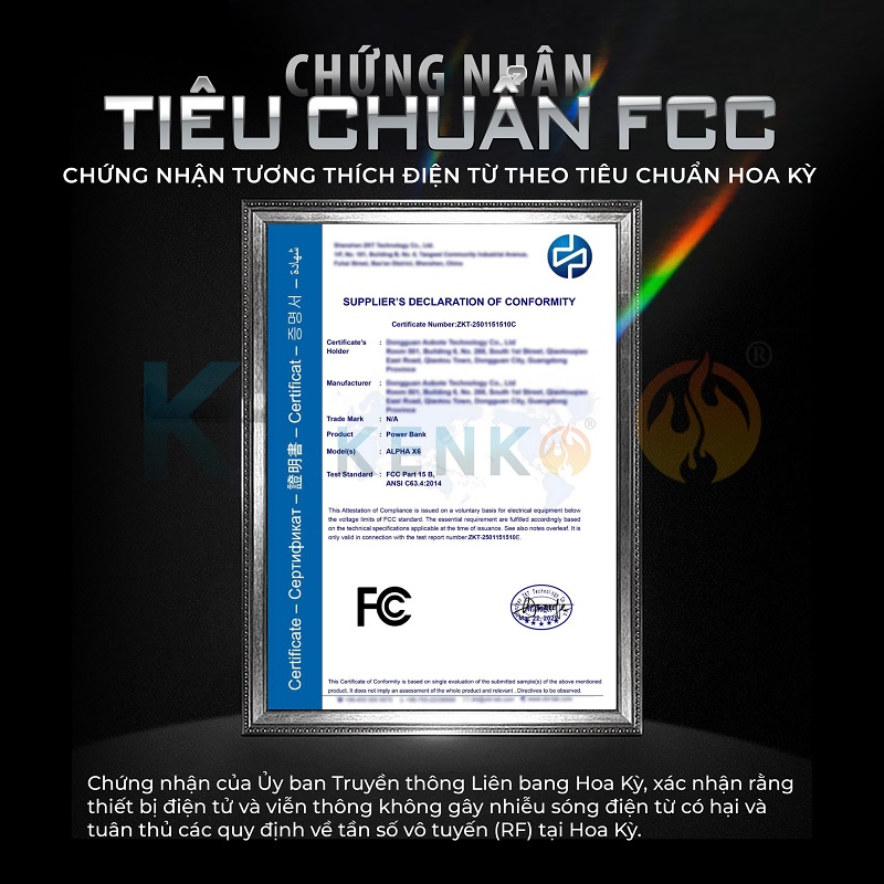 Sản phẩm KENKO không chỉ an toàn mà còn đảm bảo tính tương thích và ổn định trong mọi điều kiện sử dụng. Chúng tôi tự hào đạt được các chứng nhận kỹ thuật quốc tế sau: