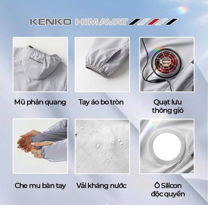 Kenko luôn ưu tiên sử dụng các loại vải nhẹ, mềm, có khả năng thấm hút mồ hôi và khô nhanh như Himacool™, cotton pha polyester hoặc vải denim chống tia UV. Những chất liệu này vừa đảm bảo sự thoải mái khi mặc, vừa giúp luồng gió từ quạt được lưu thông hiệu quả khắp cơ thể. Ngoài ra, chất liệu vải nên có lớp phủ chống thấm nước DWR (Durable Water Repellent) giúp linh hoạt ngay cả khi gặp mưa nhỏ hoặc môi trường ẩm ướt.
