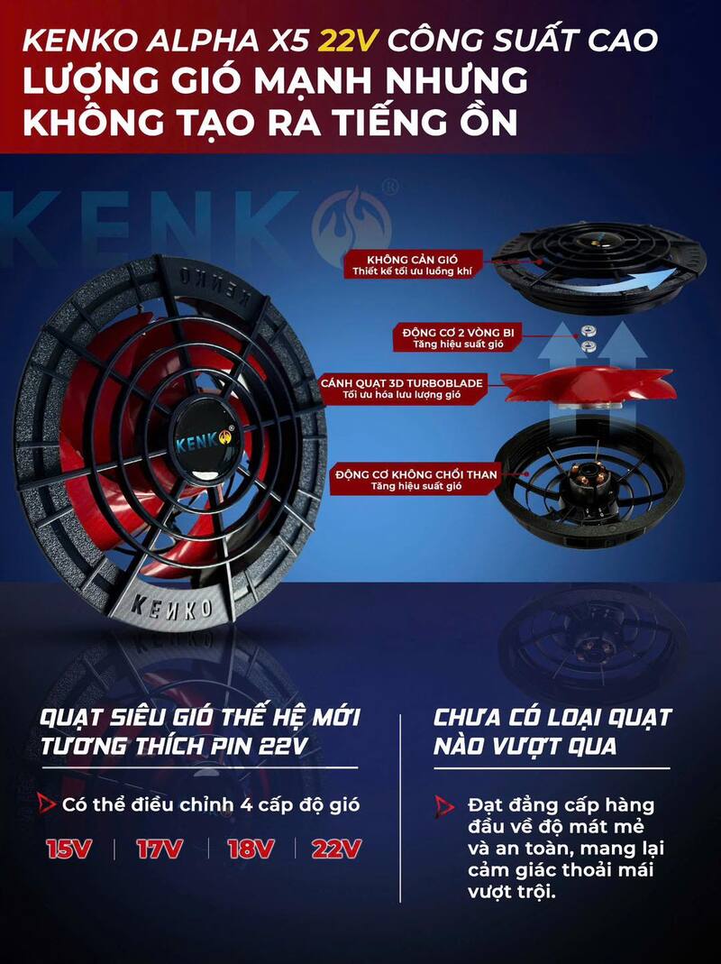 Quạt KENKO dùng cho hệ 22V: cân bằng nhất cho số đông