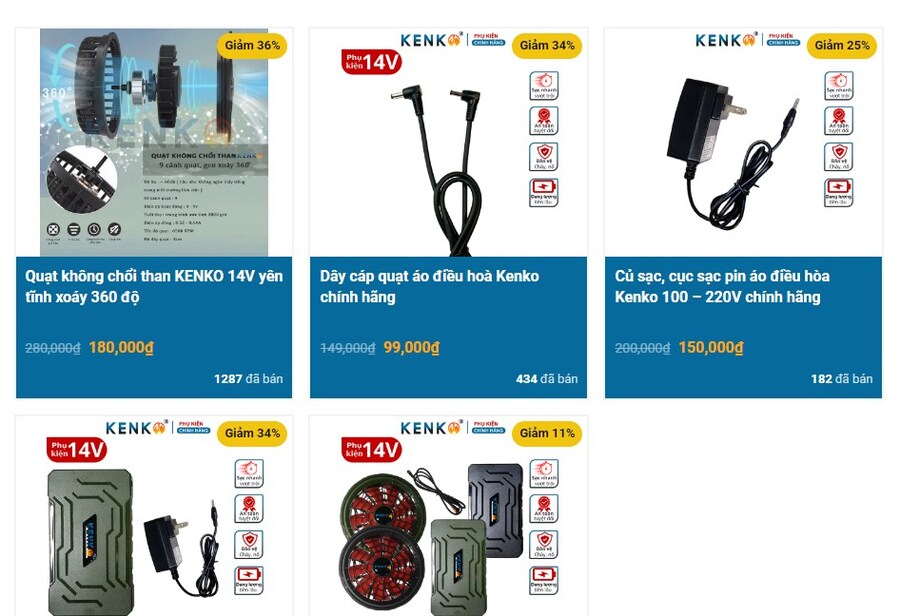 Tại Kenko bạn sẽ được tư vấn kỹ lưỡng để chọn sản phẩm thay thế phù hợp cho từng loại áo. Đơn vị có đầy đủ các phụ kiện như: Áo rời, quạt không chổi than, dây cáp, củ sạc, cục sạc, pin áo,... Vì thế khách hàng chỉ cần chọn chọn phụ kiện thích hợp để khắc phục sự cố mà không cần bỏ phí cả chiếc áo đang sử dụng.